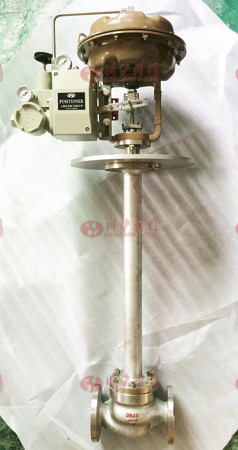 气动低温调节阀是由气动多弹簧薄膜执行机构和低温调节阀组成,气动低温调节阀在石油、化工、冶金等工业经营过程的自动控制中得到广泛的应用。气动低温调节阀它特别适用于-60~-196℃低温状态下的介质(如液氧、液氮等)的调节。为确保调节精度,必须配用阀门定位器。超低温气动调节阀是单座调节阀、双座调节阀的变形产品。它与常温调节阀不同之处在于采用长颈型上阀盖,使填料处于常温下工作。气动低温调节阀由阀门定位器给出信号压力输入到气动薄膜执行机构的气室,产生推力,通过连接杆件带动阀芯,阀芯位置的变化使阀的流通截面积变化,实现对介质流量的调节。